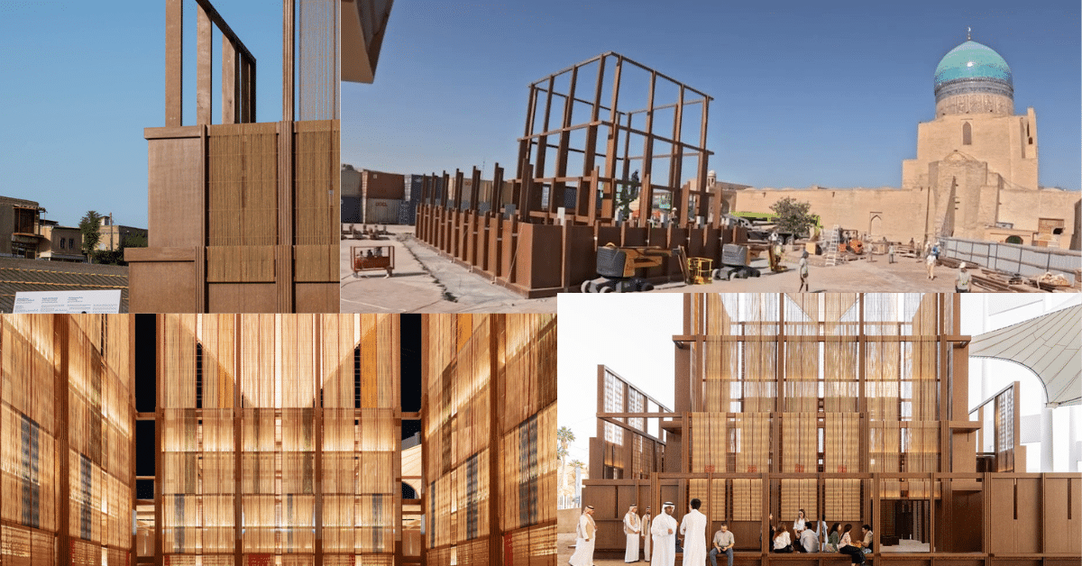 After standing as a prominent feature in Jeddah, the AlMusalla Pavilion has traveled to Bukhara, where it has been reassembled for the city’s inaugural biennial. The move highlights the concept of mobile architecture, showcasing how structures can adapt to new environments without losing their original identity.