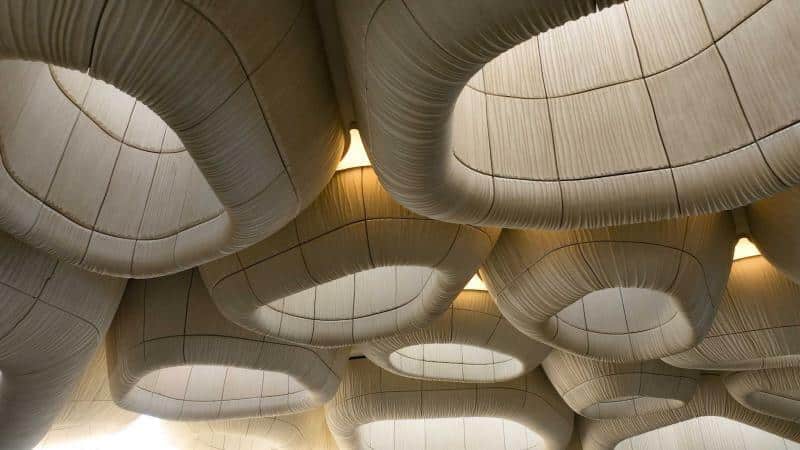 أما من ناحية المواد، فقد تم استخدام 85٪ من الأحجار المحلية المستخرجة من المحاجر الإقليمية، مع الاعتماد على الخرسانة منخفضة الكربون في الهياكل الأساسية، ما يعكس التزامًا بالتصميم المستدام وتقليل البصمة البيئية. كما يسعى المشروع لتحقيق حياد كربوني كامل من خلال تعويض 100٪ من الانبعاثات المتبقية، ما يجعل التجربة المعمارية متكاملة بين الجمالية والفكر البيئي.