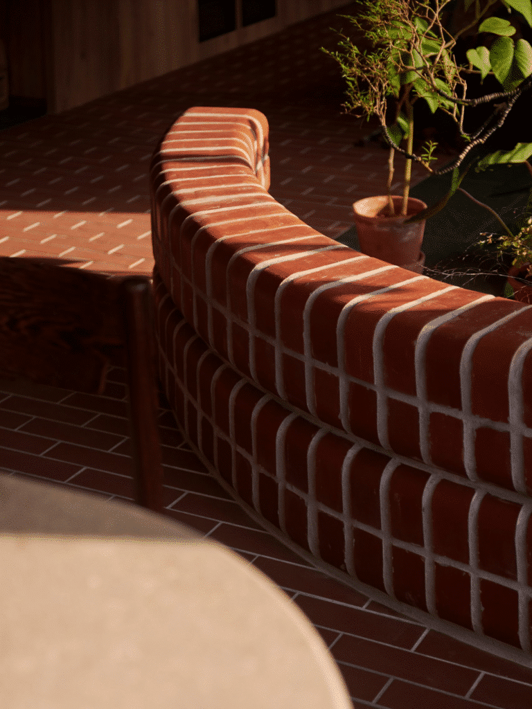 إعادة استخدام المواد التراثيةيعيد طوب الحافة المزدوجة إدخال مواد المساحات العامة التقليدية إلى منزل معاصر مما يخلق رابطًا ذا معنى مع الذاكرة المحلية.