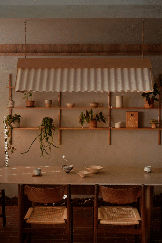 Use of double bullnose bricks in a Singapore flat to integrate nature and living space
