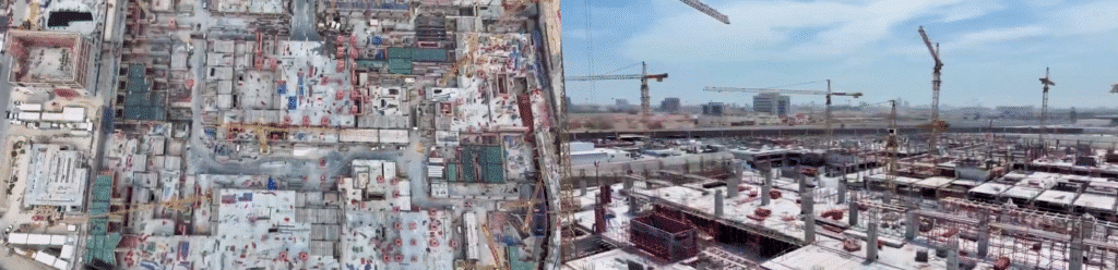 وتيرة بناء سريعة وسط تجهيزات ضخمة في الموقع