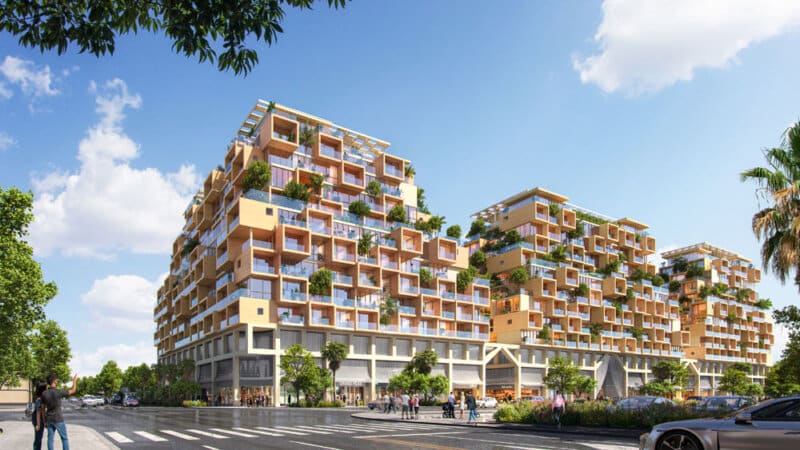 يعرض المشروع تجربة عمرانية تعتمد على كتلة متدرجة تكسر حدة الارتفاع وتمنح الواجهة حضورًا بصريًا متوازنًا. تتداخل الشرفات المزروعة مع الخشب والزجاج لتكوين طبقات واضحة من الضوء والظل، ما يخلق حركة مستمرة على مستوى الواجهة. تعتمد المقاربة التصميمية على تفكيك الكتلة بدل تشكيل مبنى واحد صلب، وهو خيار يمنح السكان خصوصية أكبر لكنه يزيد من تعقيد الصيانة والتنظيم طويل المدى. ورغم ذلك، يعزز المشروع قيمة السكن الطبيعي داخل نسيج حضري كثيف، ويقدّم نموذجًا قابلاً للتطوير في سياقات مشابهة.