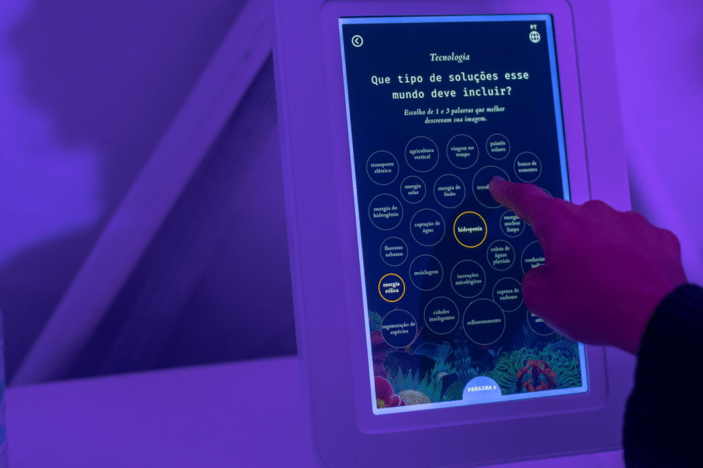 يقدّم تركيب The Lumisphere Experience من Visions2030 مساحة عامة تعاونية أمام متحف الغد في ريو دي جانيرو. يدعو المشروع الزوار لاستكشاف مستقبل بيئي مثالي من خلال ثلاثة قباب مترابطة تُحوّل الخيال الفردي إلى رؤى بصرية مشتركة. يعتمد المشروع على تفاعل مباشر بين الجمهور والتقنية والنص السمعي البصري، ليعمل كمنصة مفتوحة لتخيّل مستقبل مناخي إيجابي.