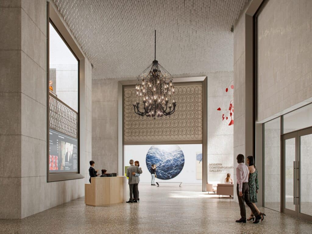 · مساحة عرض ضخمة: إضافة 68,000 قدم مربع من البناء الجديد، بما في ذلك 22,000 قدم مربع مخصصة للمعارض الدائمة والمؤقتة، مما يضاعف المساحة الحالية.