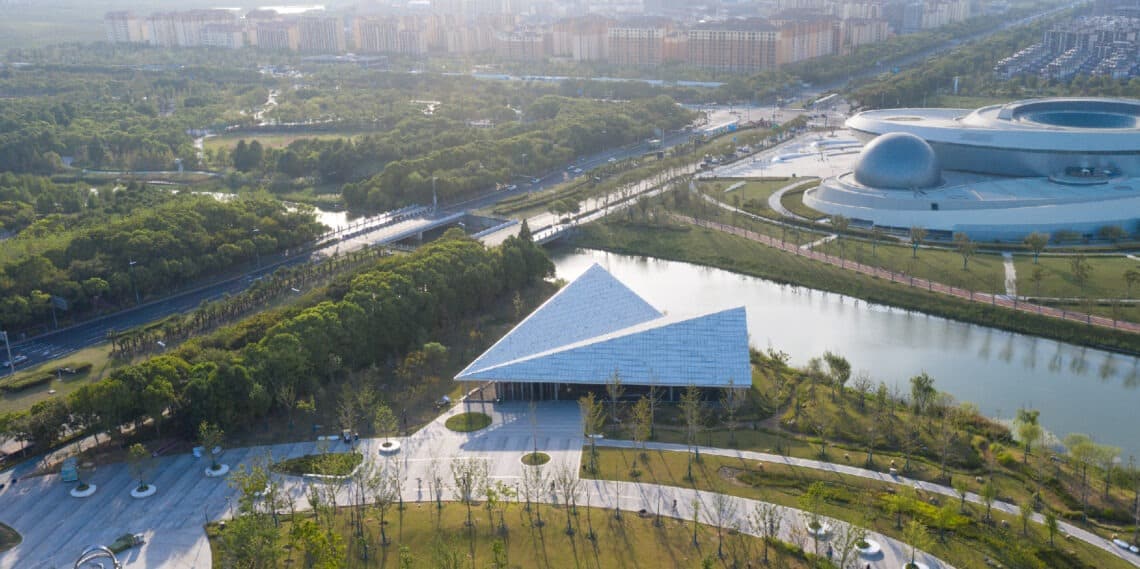 وسط الجهود المبذولة لتعزيز الاستدامة في شنغهاي، يبرز مشروع طائرة الأوريغامي الذي أنجزته مجموعة الصين للتصميم والبحث المعماري عام 2022، بعد عام واحد من افتتاح حديقة لينغانغ ستاري سكاي.