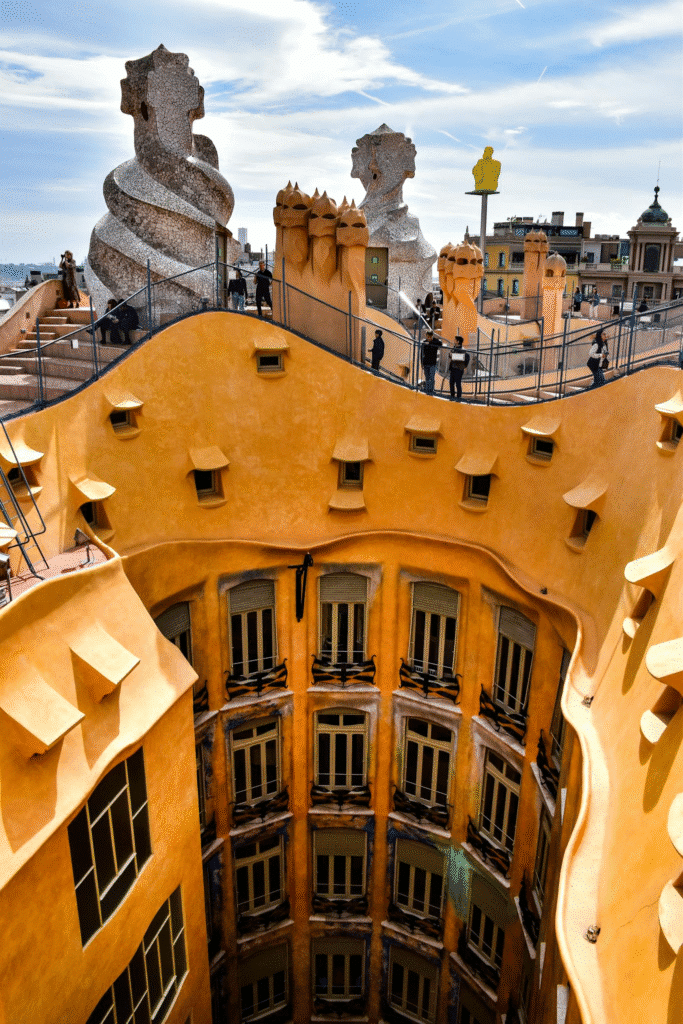 يُعد مبنى لا بيدريرا (La Pedrera – Casa Milà) في برشلونة تحفة معمارية تنتمي إلى الحداثة الكاتالونية (Catalan Modernism)، وهو مثال رائد على العمارة العضوية (Organic Architecture) التي صممها أنطوني غاودي. تكمن العبقرية الإنشائية في تحرير الواجهة الحجرية من وظيفة حمل الأحمال، بالاعتماد على هيكل داخلي مستقل (Independent Internal Structure) من إطار فولاذي وعوارض خرسانية مسلحة تدعمها أعمدة داخلية. هذا الابتكار أتاح لغاودي إنشاء واجهة مموجة ومتموجة (Undulating and Free-Flowing Façade) شبيهة بالأمواج، بالإضافة إلى توفير مخططات طوابق مرنة (Flexible Floor Plans) قابلة للتغيير. من الناحية الوظيفية، يدمج التصميم حلولاً بيئية متقدمة، مثل الفناءين الداخليين الكبيرين لتعزيز الإضاءة الطبيعية والتهوية المتقاطعة. أما النقد الأولي الذي واجهه المبنى، فقد وصفه بـ “المحجر” (La Pedrera) بسبب مظهره الخشن وغير التقليدي، لكنه أصبح اليوم رمزاً للحداثة البناءة والدمج المبتكر بين الهندسة والطبيعة.