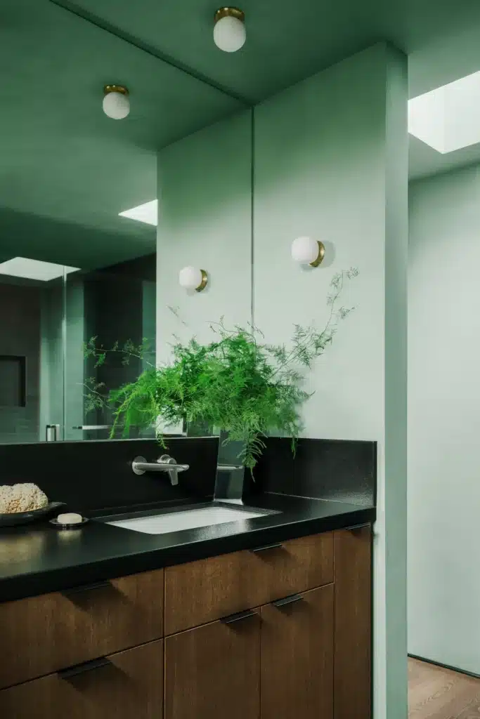 لم تكن هذه المرة الأولى التي يلتقي فيها الزوجان بالمصممة الداخلية ليا رينج، مؤسسة شركة “هيومان”. فقد تعارفوا قبل أشهر خلال منافسة على شراء عقار آخر لم يحالفهما الحظ في الفوز به. يقول ديفيد فالبوينا: “بحلول الوقت الذي عثرنا فيه على هذا المنزل، كانت ليا قد أصبحت تملك فهمًا عميقًا لشخصيتنا وأسلوب حياتنا”. لم يكن هذا الفهم مجرد انطباع عابر، بل شمل تفاصيل دقيقة؛ حياة براندون كمحترف في مجال الفن، حيث من المقرر أن تزين لوحاته الشخصية جدران المنزل إلى جانب أعمال مصورين من أصدقائهما، وعمل ديفيد كمصمم جرافيك وفنان للرسوم المتحركة. كما جمع الزوجان شغف مشترك نحو التصميمات الداخلية ذات الطابع الغامق والجريء. يضيف فالبوينا: “أحسست أن ليا ستتمكن من رسم حياتنا في هذا المكان حتى قبل أن ننتقل إليه رسميًا”.