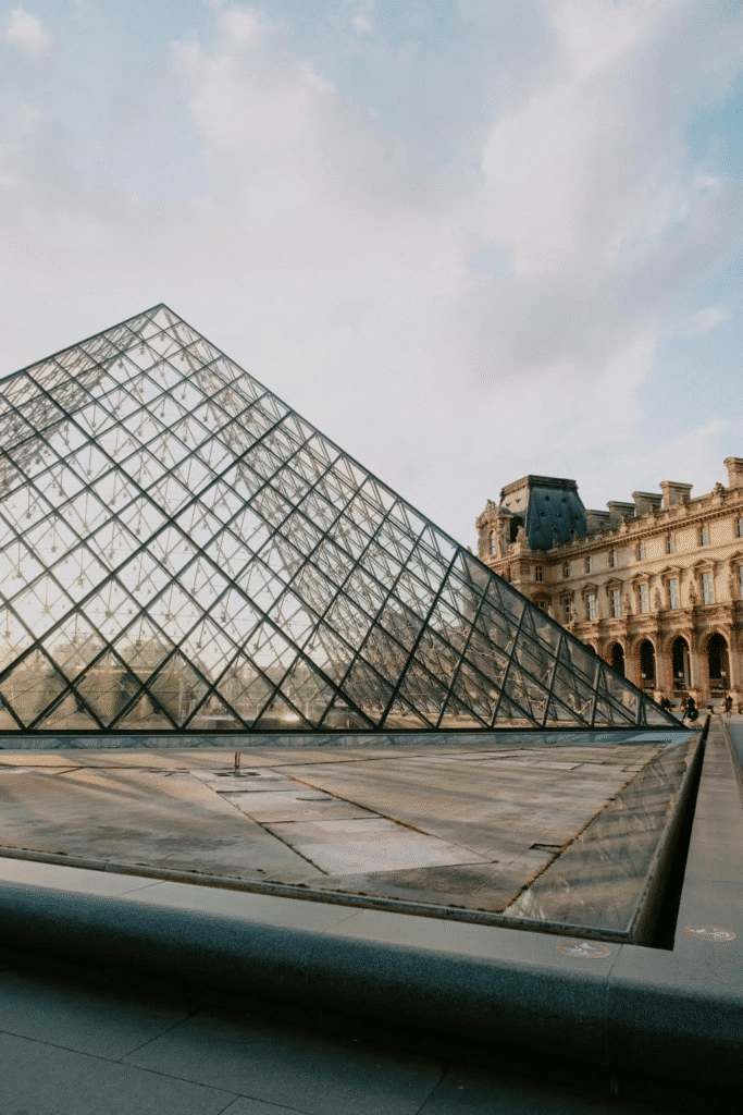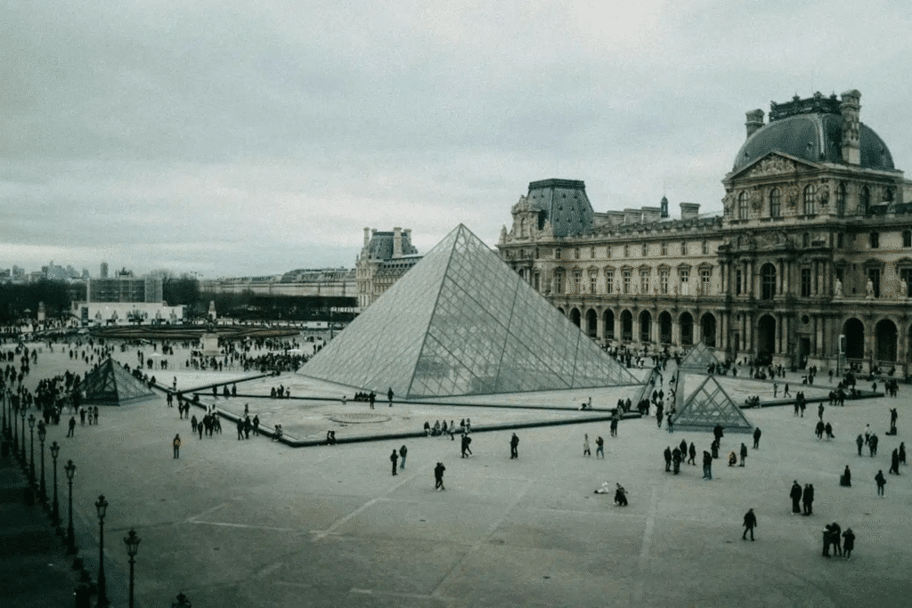 يُعد هرم اللوفر (Louvre Pyramid) في باريس أيقونة معمارية حداثية متأخرة (Late Modernist Architecture)، حيث صممه آي. إم. باي (I. M. Pei) ليكون المدخل الرئيسي لمتحف اللوفر التاريخي. وتكمن العبقرية الإنشائية في بناء إطارها الهيكلي من الفولاذ الشفاف عالي الدقة (High-precision transparent steel) الذي يدعم 673 لوحاً زجاجياً مُصفّحاً (Laminated Glass Panels)، مما يضمن خفة الوزن والشفافية التامة، ويسمح بدمج شكل هرمي واضح ومحدد ضمن ساحة Cour Napoléon الكلاسيكية دون حجب واجهات القصر التاريخي. إن النجاح الوظيفي للهرم لا يقتصر على كونه معلماً جمالياً، بل في كونه حلاً هندسياً لمشكلة ازدحام الزوار (Visitor Congestion)، حيث ينقلهم إلى صالة استقبال تحت الأرض تتسم بكفاءة عالية في التوزيع. أما النقد الجمالي والتاريخي الأولي الذي واجهه المشروع، فكان يتمحور حول الصدمة البصرية لـ التناقض الصارخ (Striking Juxtaposition) بين الهندسة الحديثة (الهرم) والمحيط الكلاسيكي (القصر)، لكن هذا التناقض تحول مع الزمن إلى رمز للتكامل المبتكر بين التاريخ والمعاصرة.