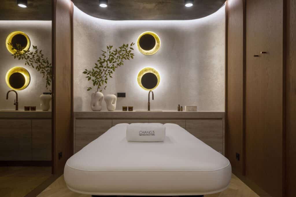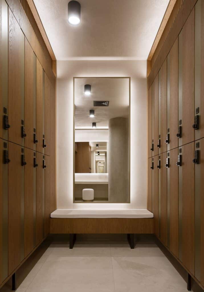 إلى جانب مناطق التدريب، يضم الاستوديو مرافق مخصصة للتجدد، مثل الساونا وحوض الغمر البارد، وغرف العلاج الطبيعي والتدليك، إضافة إلى مساحة جلوس هادئة. تلعب المعالجة الصوتية والتخطيط المريح دورًا أساسيًا في تقليل التشويش ودعم الإحساس بالجسد والحركة.