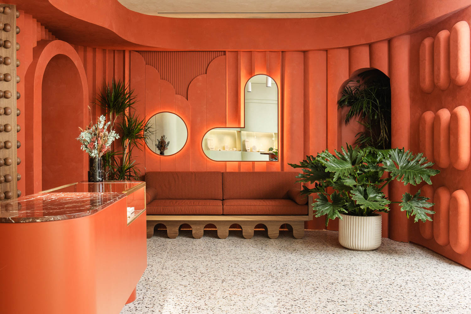 The central column, now mirrored, stands as the nexus of two new curves, one furnished with a plush velvet chair from Sun at Six, a marble table, and a vintage Italian chandelier. The deliberate use of shapes such as orbs, ovals, and niches provides an aesthetic that transcends the traditional, making the interior a visual feast for patrons.