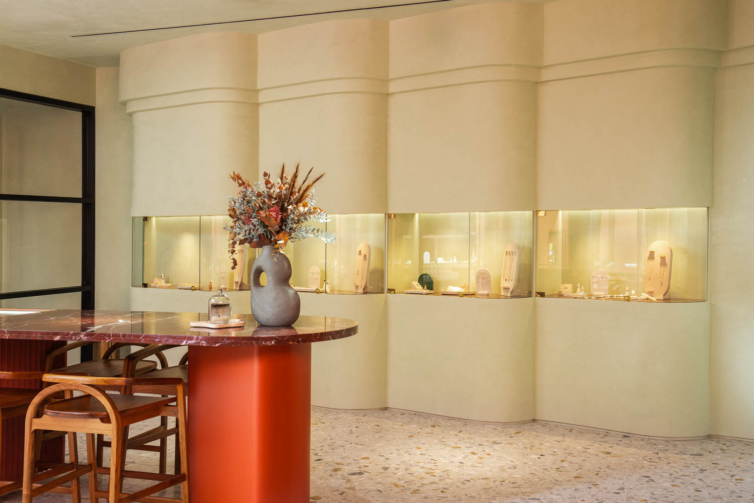 Jewelry shopping can be an intimidating experience, especially when dealing with high-value items. Picture salespeople, often with supercilious smiles, positioned behind counters filled with precious baubles, sizing up customers. A sense of ease and welcome is a rare find in such scenarios. However, Barbara Rourke and Jason St. John, co-founders of the Los Angeles-based studio Bells + Whistles, brought a refreshing change to Marrow Fine’s third iteration in Chicago. This collaboration with owner Jillian Sassone has been ongoing for four years, starting with the creation of the first shop in San Diego, followed by Newport Beach, and a renovation of the original.