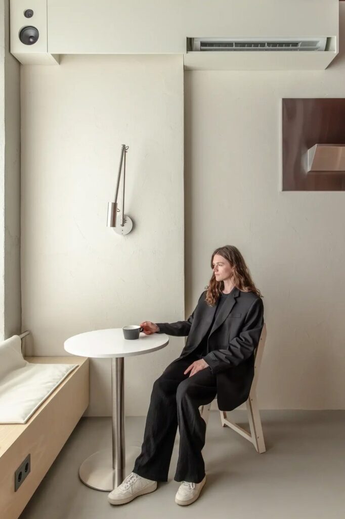 Although the café spans only 66 square meters, architects Sasha Kapashnaya and Dasha Lebedieva from KIDZ Studio managed to craft an exceptional layout. The design successfully accommodates the diverse needs of coffee, books, and music within a compact area, seamlessly and efficiently.