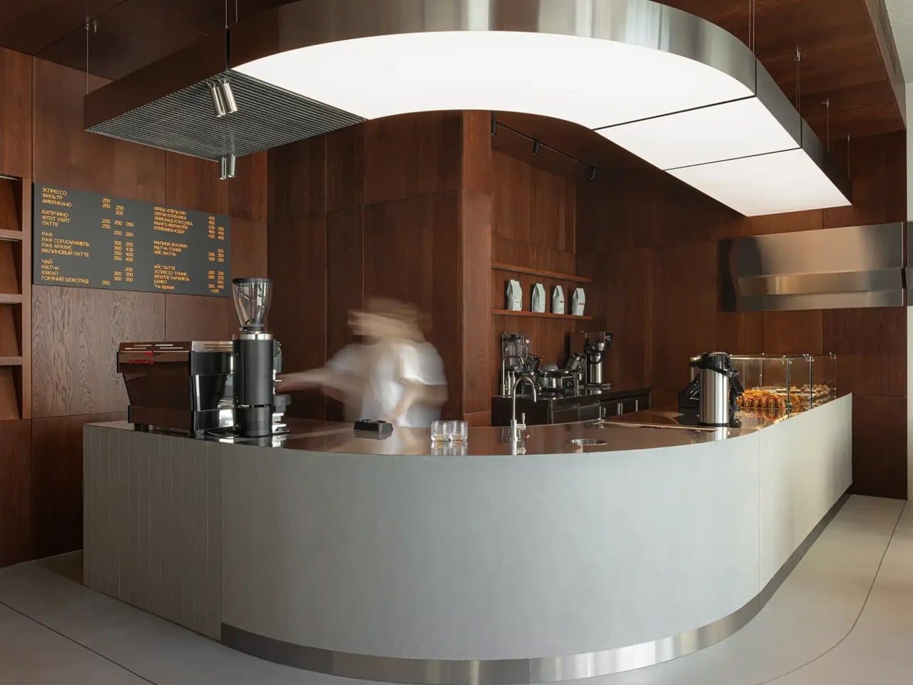 Additionally, the integration of natural light strengthens the connection to the rhythm of the city outside, while preserving the cozy, comfortable atmosphere inside the café.