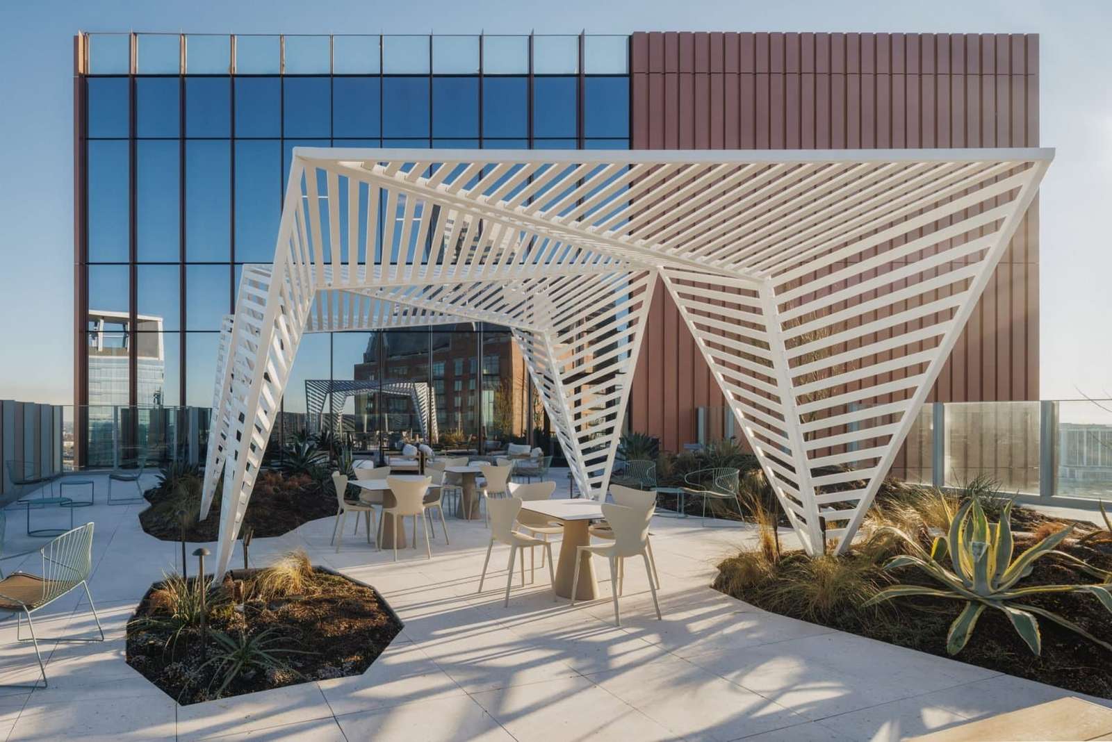 The tower’s modular design, divided into 60-foot by 60-foot modules, maximizes natural light penetration throughout the floors. Therefore, creating a comfortable and inviting interior environment. Notably, the project utilized an Embodied Carbon in Construction Calculator for the first time in a Texas construction. Thus, underscoring its commitment to sustainability.