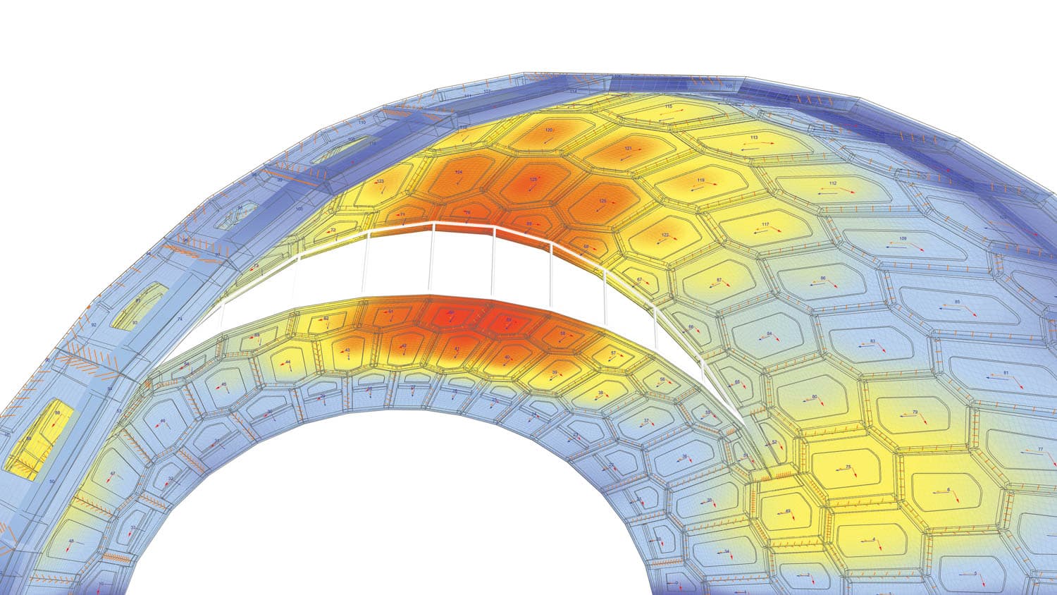 The pavilion’s hollow modules, forming its distinctive shell-like structure, were fabricated using digital technologies and robotic manufacturing processes. The design and fabrication process involved the use of Rhinoceros, Grasshopper, and Sofistik software to create a detailed and efficient construction plan.