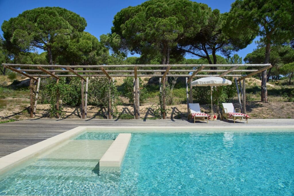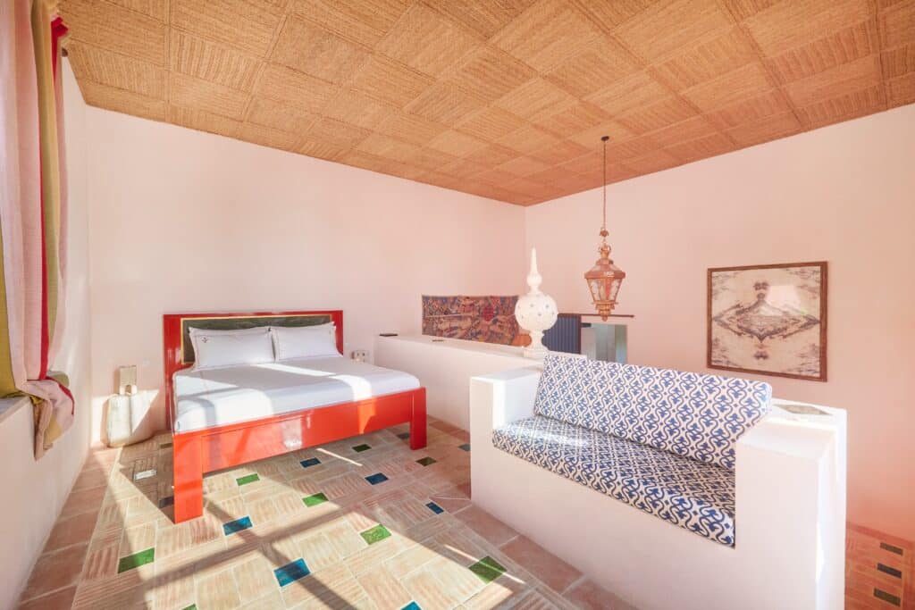 Following the opening of the main hotel, the project expanded with the addition of two nearby villas, managed under Marugal Hotel Management. One of them is La Salvada Villa, designed in collaboration with Egyptian designer Tarek Shamma, and set amidst a natural meadow blooming in a soft pink hue. Its exterior design evokes Moroccan kasbahs and can accommodate up to four guests.