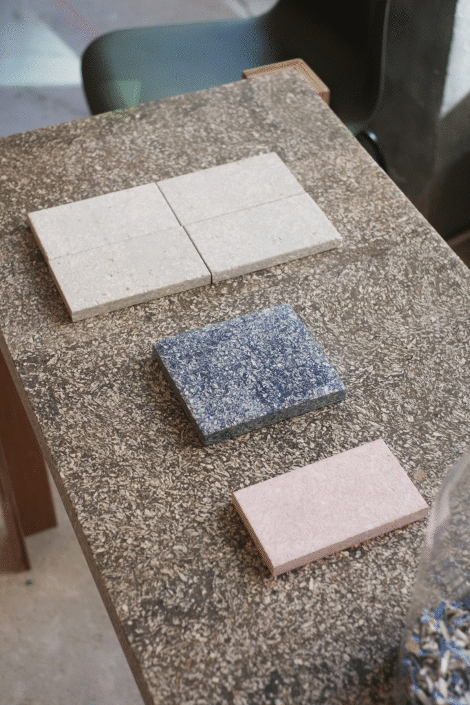Cupsan by Blast Studio is more than a new material: it is a proposition for rethinking what waste means in architecture. It turns the coffee cups used in daily rhythm of city life into surfaces, furniture, panels that can last, express, and perform. With finishes that range from raw stone-like texture to polished terraces of pattern, and properties that include workability, fire resistance, recyclability, and strength similar to wood, it bridges multiple architectural demands.