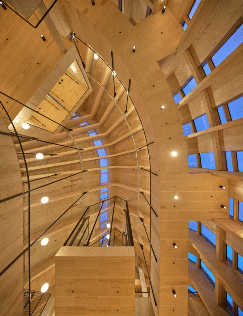| Heart Room | Central atrium | 15m timber arches, social hub, natural lighting |
