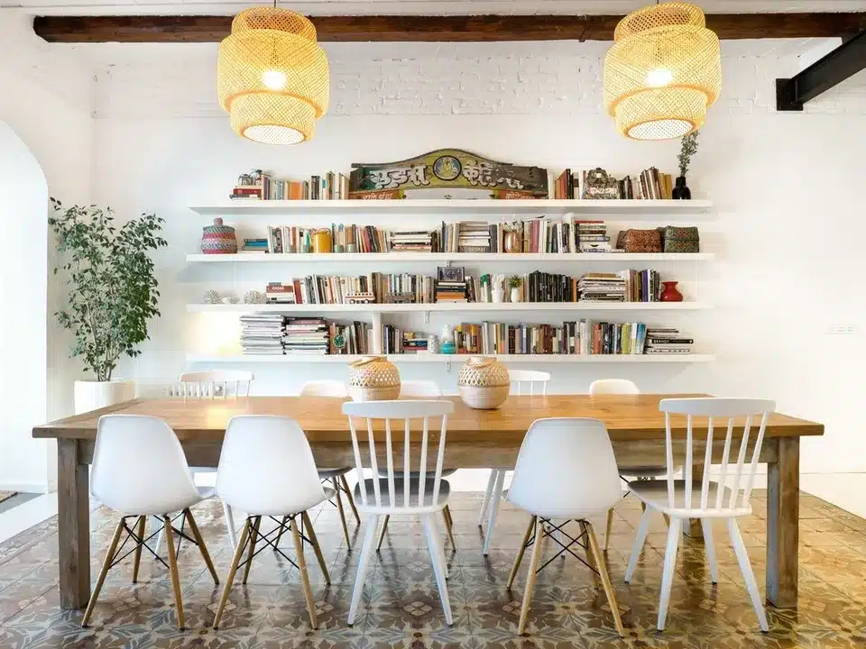In Barceloneta, just blocks from the beach, this two-bedroom loft is a study in laid-back sophistication. Pale woods, marble accents, and creamy walls provide a neutral backdrop for vibrant rugs, bold artwork, and an army of lush plants.