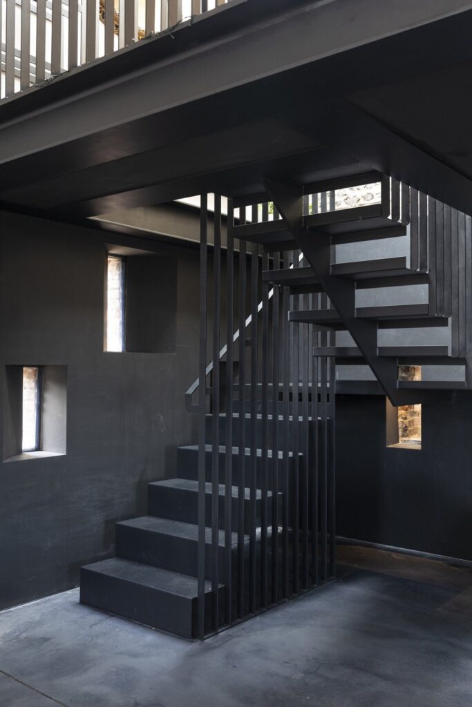 - The custom steel staircase, which pierces the space like a piece of industrial sculpture.