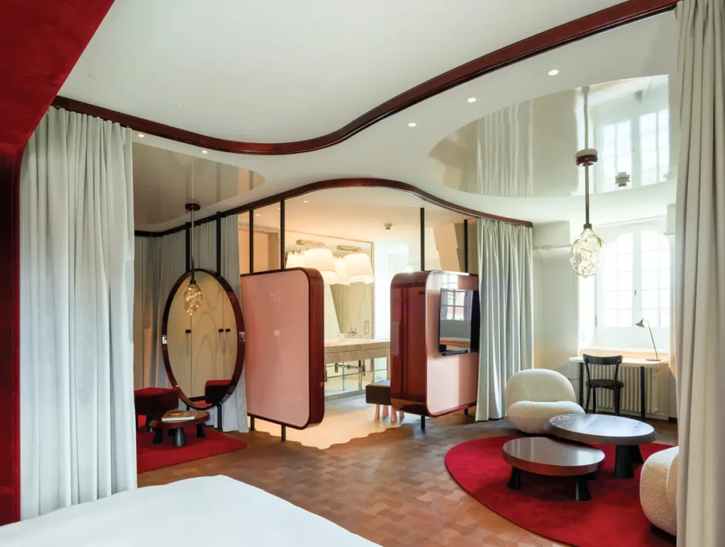 - Suites: A mix of Art Deco opulence and clinical precision, with curtains doubling as room dividers.
