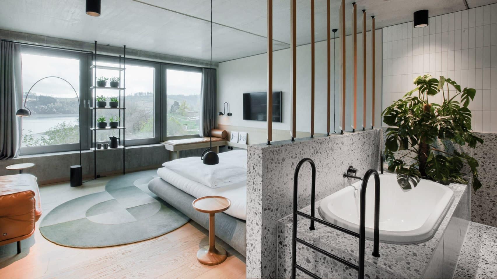 Designer Werner Aisslinger has recently renovated Hotel Seegarten, a boutique hotel in Germany’s Sauerland region. Overlooking the picturesque Sorpesee lake, the hotel now features interiors crafted from locally sourced materials, including wood and terrazzo, and integrates hydroponic systems to blend harmoniously with its natural surroundings.