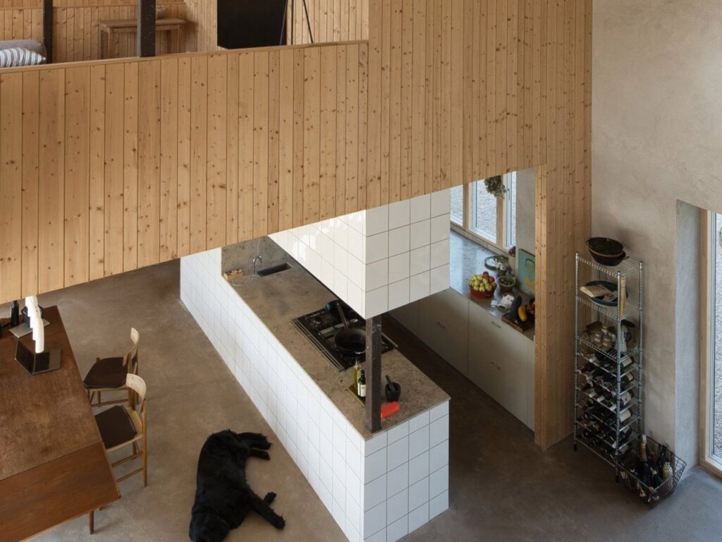 Inside, pine wood panels cover the spaces, imparting a sense of warmth and acoustic comfort while maintaining the visual continuity that lies at the heart of minimalist design.