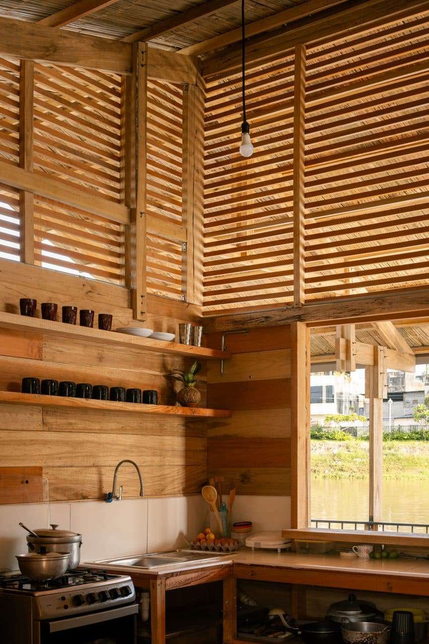 Made from repurposed wood, slatted openings called “chazas” aid in the interior’s natural cooling and ventilation.