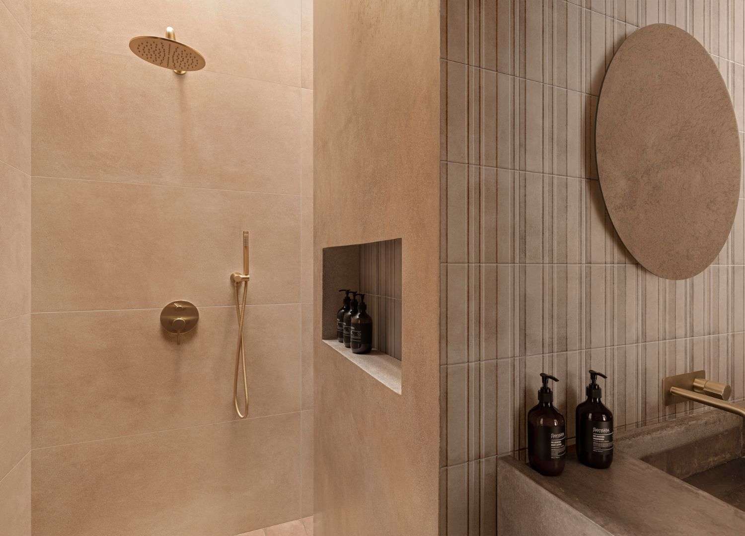 ArtCraft is an example of the striking combination of industrial innovation and traditional craftsmanship. Drawing inspiration from traditional terracotta, this range of designs – from Quadri and Segni to the more minimalist Bolli, Triangoli, and Bande – is characterized by delicate border movements and sandy textures composed of an abundance of light and dark grains. As part of the Crogiolo collection, named from Marazzi’s artistic experimentation laboratory in Modena (Italy), ArtCraft embraces the legacy of inspiring, timeless design.