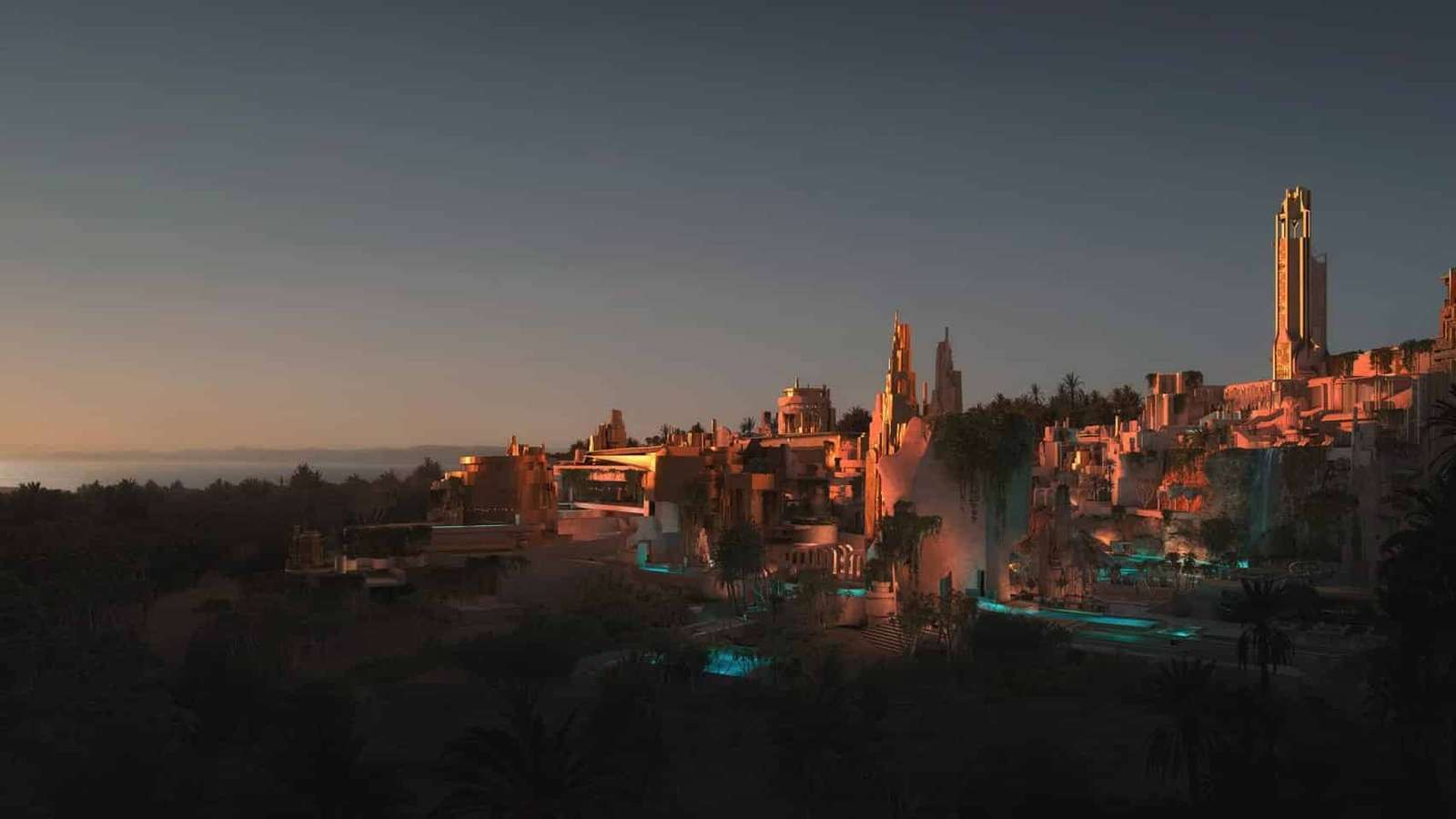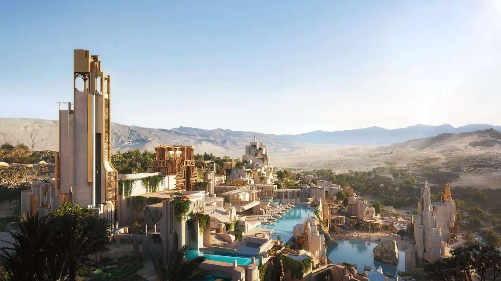 Visitors to Elanan will embark on a journey of discovery, gradually revealing the resort’s captivating features as they approach. A shimmering gold tower peeks behind the dunes, enticing guests to explore further and uncover the diverse experiences that await within the resort’s confines.