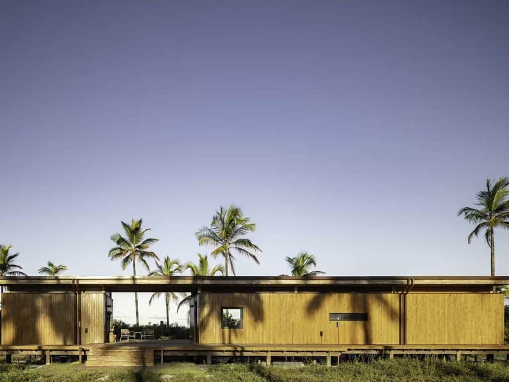 The Modular Bahia project, located on the Cocoa Coast, demonstrates how timber cladding can capture a tropical character with simplicity and authenticity. Importantly, this avoids unnecessary complexity or excessive ornamentation. This system combines: