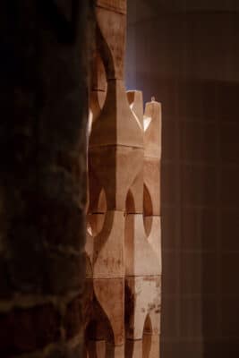 Anomalia’s journey started in a kitchen in Mumbai, where designers Bhakti V. Loonawat and Suyash Sawant experimented with fungi in cupcake trays, revealing potential for applying organic materials in building. That passion evolved into an international collaboration with MYCL, and now, a featured spot at the world’s most prestigious architecture exhibition.