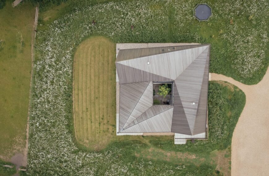 Studio Bark has added Water Farm, a timber-framed house, to a family farm in Suffolk. The design is influenced by the geometric forms of local timber-framed buildings and agricultural structures in nearby villages. The house features an origami-like, wood-clad roof … Continue reading Origami-like roof tops timber home in Suffolk by Studio Bark