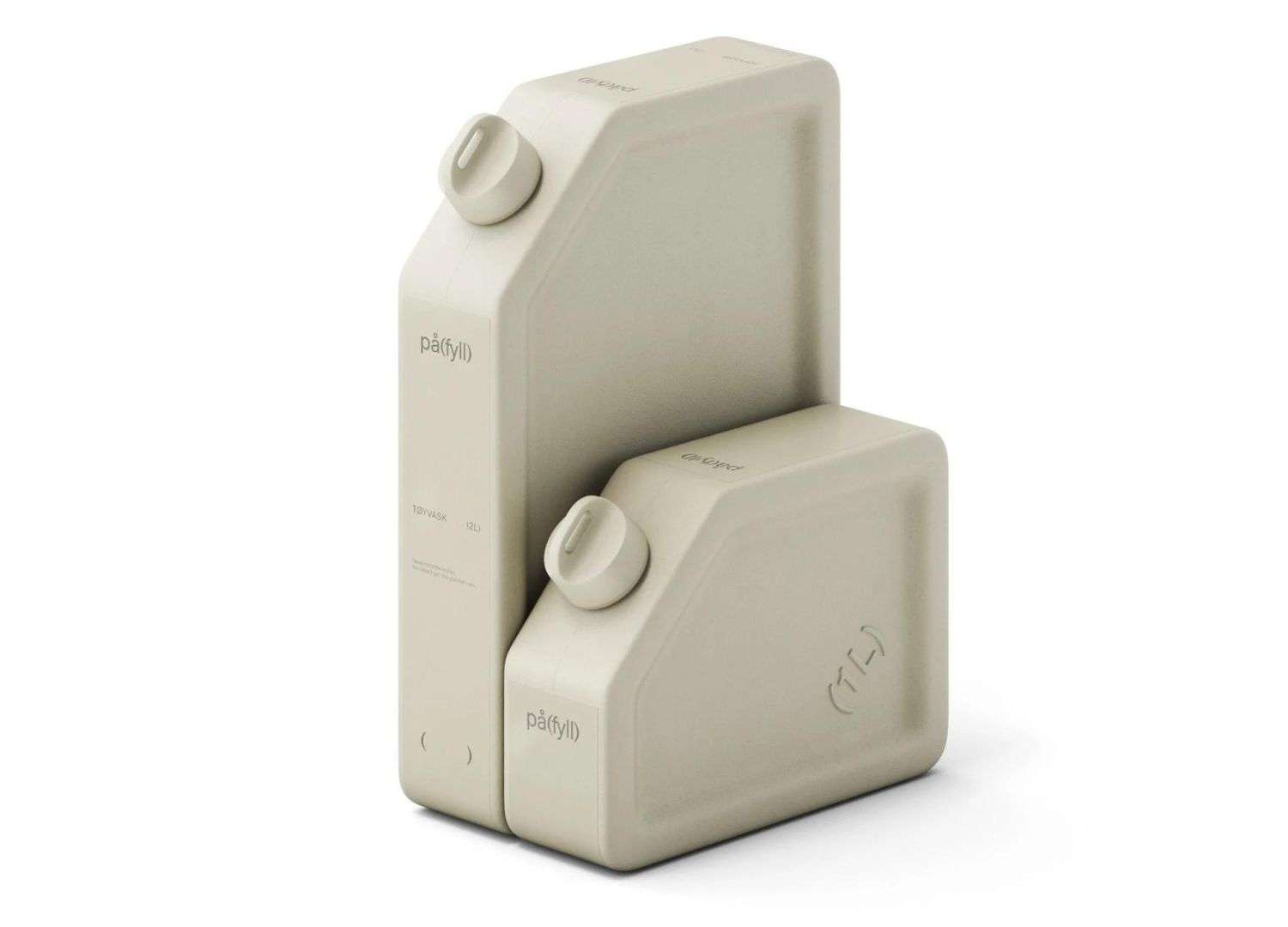 In order to create a sustainable and user-focused design, Form Us With Love launched På(fyll) after an extensive endeavor. This design process was faced with the challenge of creating a robust and adaptable container that could contain products from various brands, as well as liquids with different consistencies, all while making sure it was easy to use and store. The inspiration for this container was found in already existing objects. Like jerrycans, stackable blocks, and book spines for a user-friendly design. During the development of the container, key components were added with the intention of reducing spills and allowing easy use. Features of this container include a label with a perforated section to tie up the empty containers together.