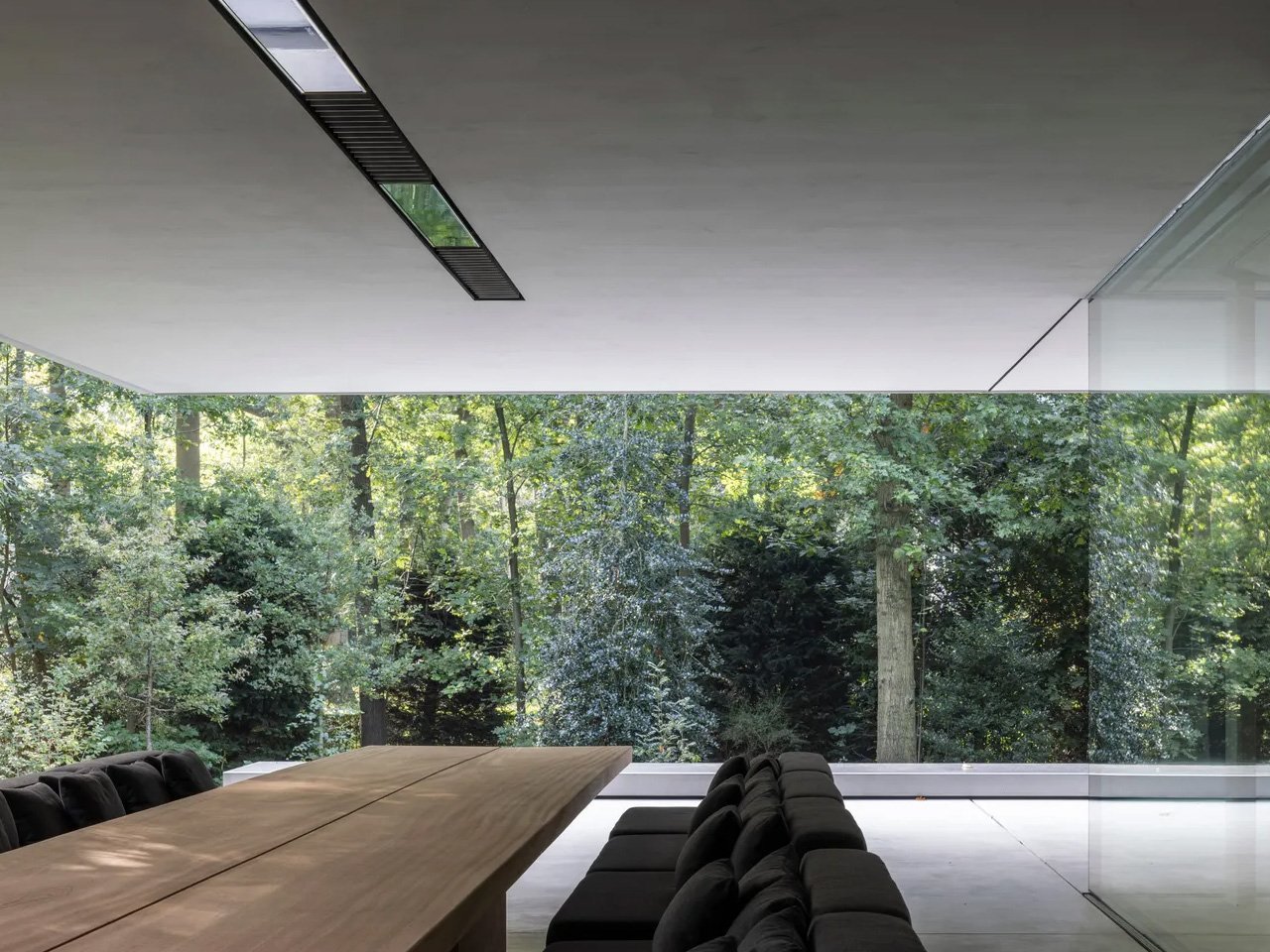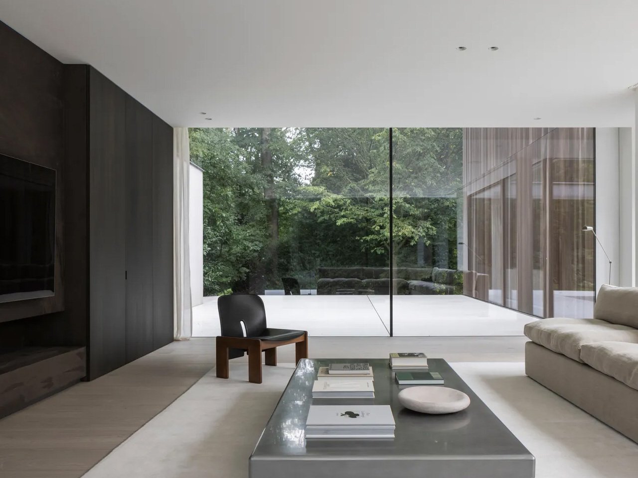 Amid the shadows of Belgian trees, the Residence SAB project emerges as a vivid example of the delicate balance between nature and architecture. The house rests quietly within the forest. Its sharp geometry and expansive glass façades assert the presence of the structure without overpowering the natural scenery.