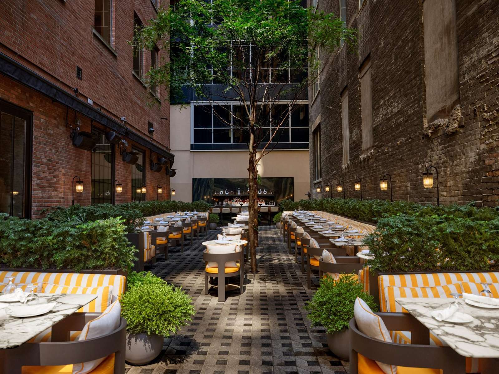 Adjacent to the restaurant is an expansive outdoor Garden Terrace, created by demolishing a dilapidated building. Therefore, providing a botanical-themed dining area and bar surrounded by plants and trees.