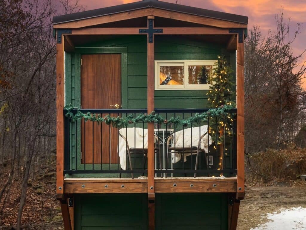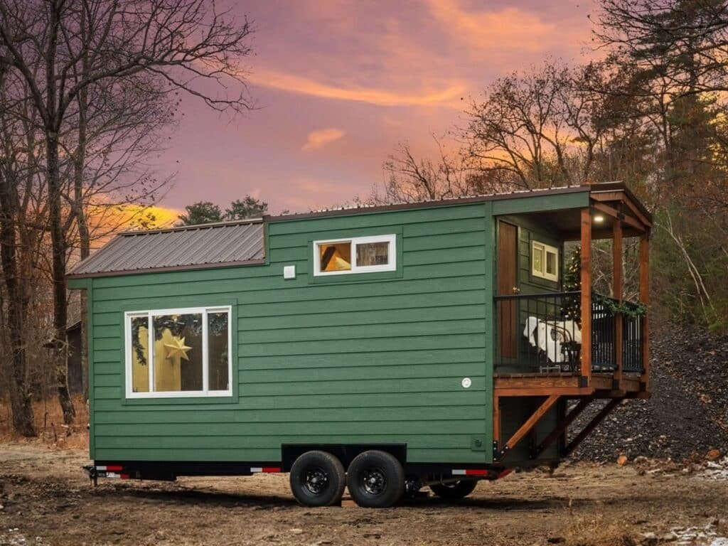 The Spruce by Backcountry Tiny Homes offers a practical example of the “less is more” philosophy. Measuring 20 feet in length, it extends to 24 feet thanks to a covered balcony that adds a social and living dimension to the outdoor space. Its width of 8.5 feet keeps it road-compliant while providing an interior sense of spaciousness that exceeds visitors’ expectations.