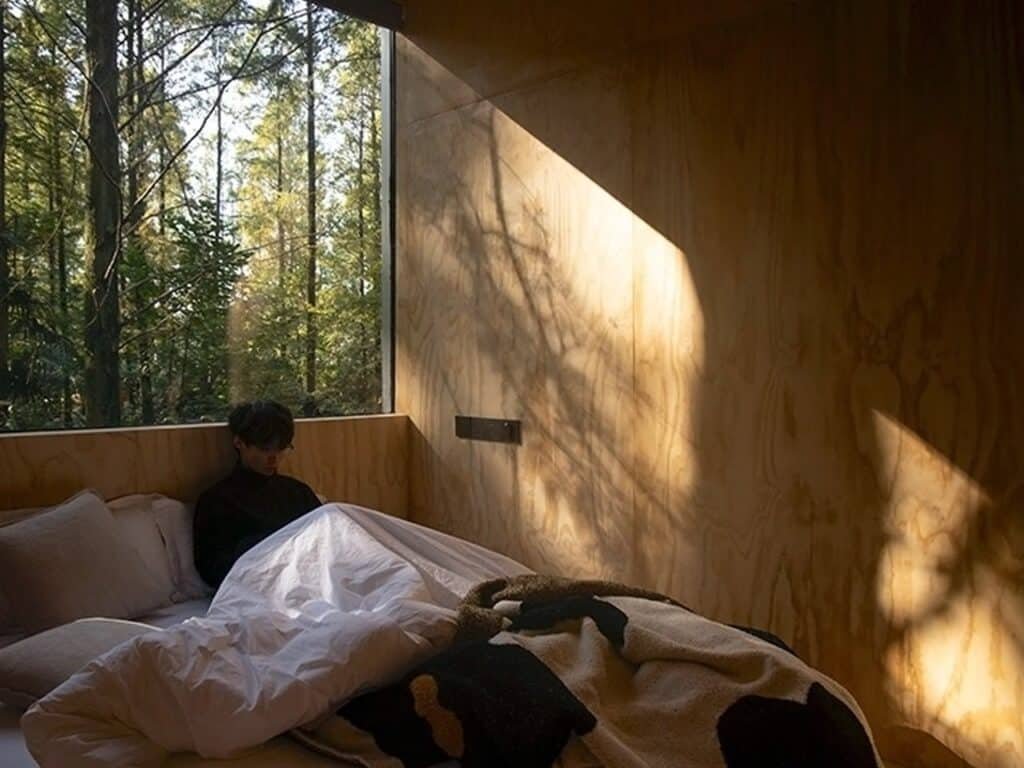 The technical aspect of the project reveals a serious commitment to environmental responsibility. All structures are built using glued laminated timber digitally modeled for precision, then prefabricated off-site to minimize any impact on the forest during construction.