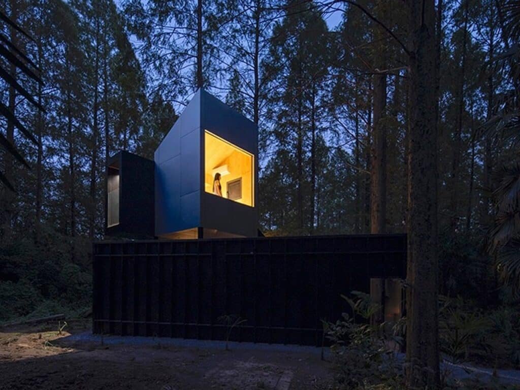 The project employs a modular design with a 2-meter width, allowing for varied forms while maintaining high efficiency in space and functionality. Hand-fired carbonized wood panels give each treehouse a natural finish and weather resistance, while small metal joints make it possible to completely disassemble and reassemble the houses without leaving any trace on the environment.