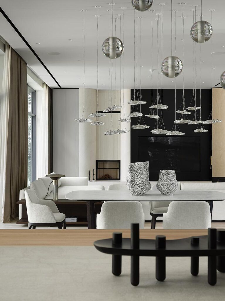 Geometry, materials, texture, colour, and lighting in The House in Maslovo Park are all dominated by a single concept: in every detail, the project conveys a balance between nature and comfort, and the interpenetration of architecture and its environment.